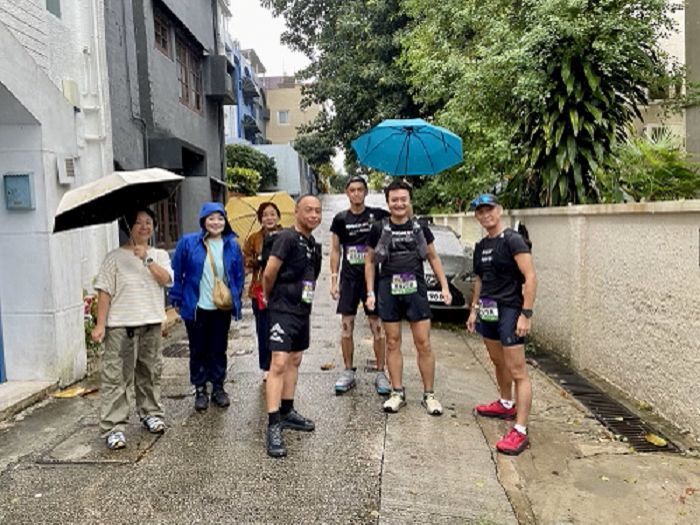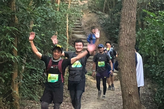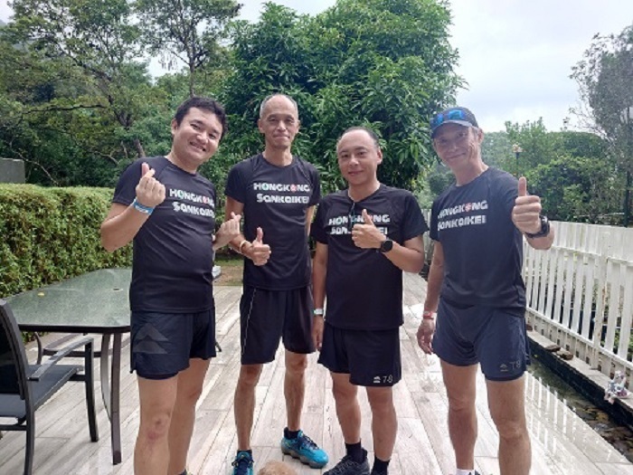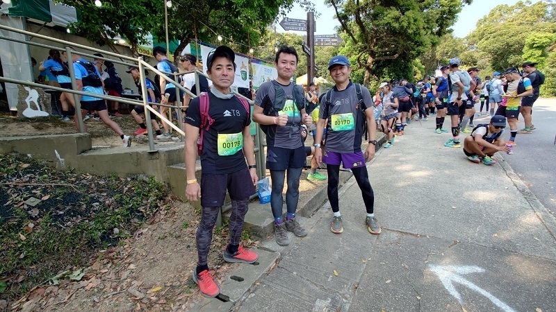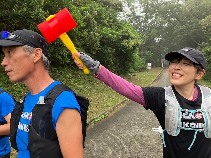 本レポーターの野中は日本からの参加で、純烈山海徑!(タイム 29時間57分)の流れを汲むTeam Hiroshiに入った。目標は「全員で完歩」、タイムは1時間短縮して「計28時間50分」とした。現地香港メンバーの熱心な練習に圧倒されつつ、本番に備えて参加した※1。お守りに前回使わなかったストックを持っていく。