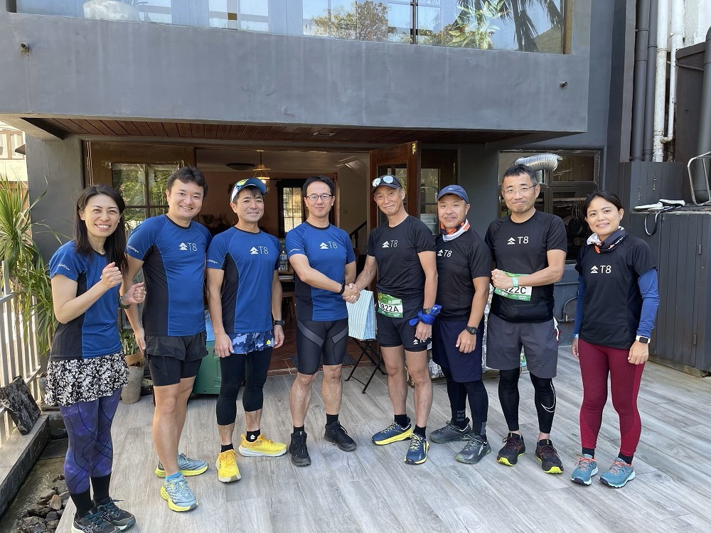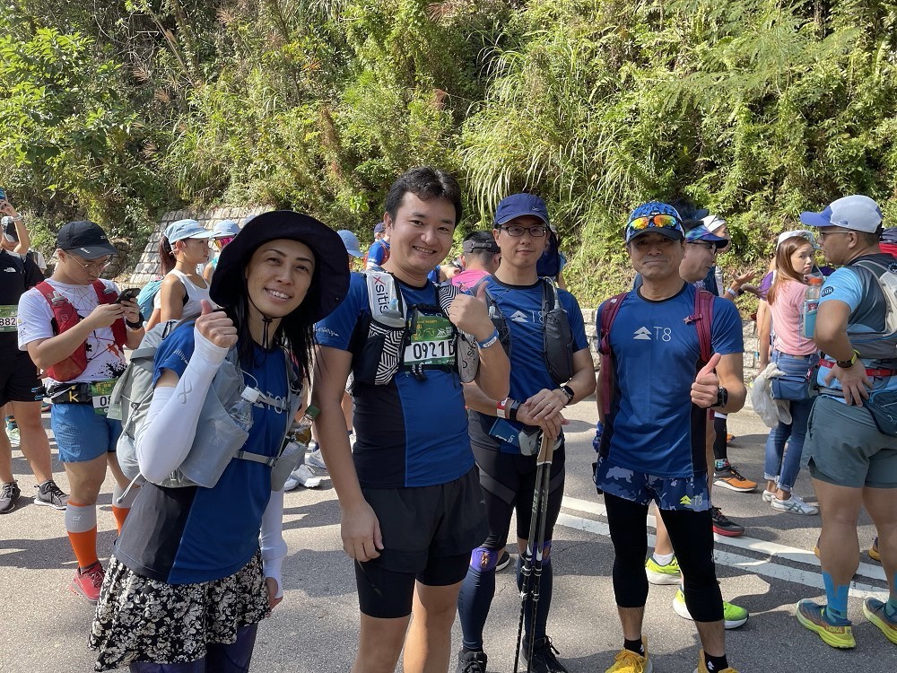 Team Hiroshiの選手は9:30にMTR烏渓沙に集合し、タクシーで米田亭に向かった。ウェアはT8のブルーで統一。タクシーの中で各自調子を共有すると、皆リラックスして笑顔だが、島内さんは業務繁忙で睡眠不足とのことだった。
