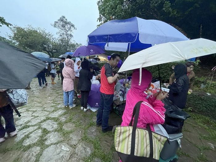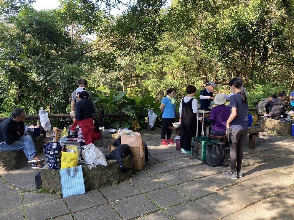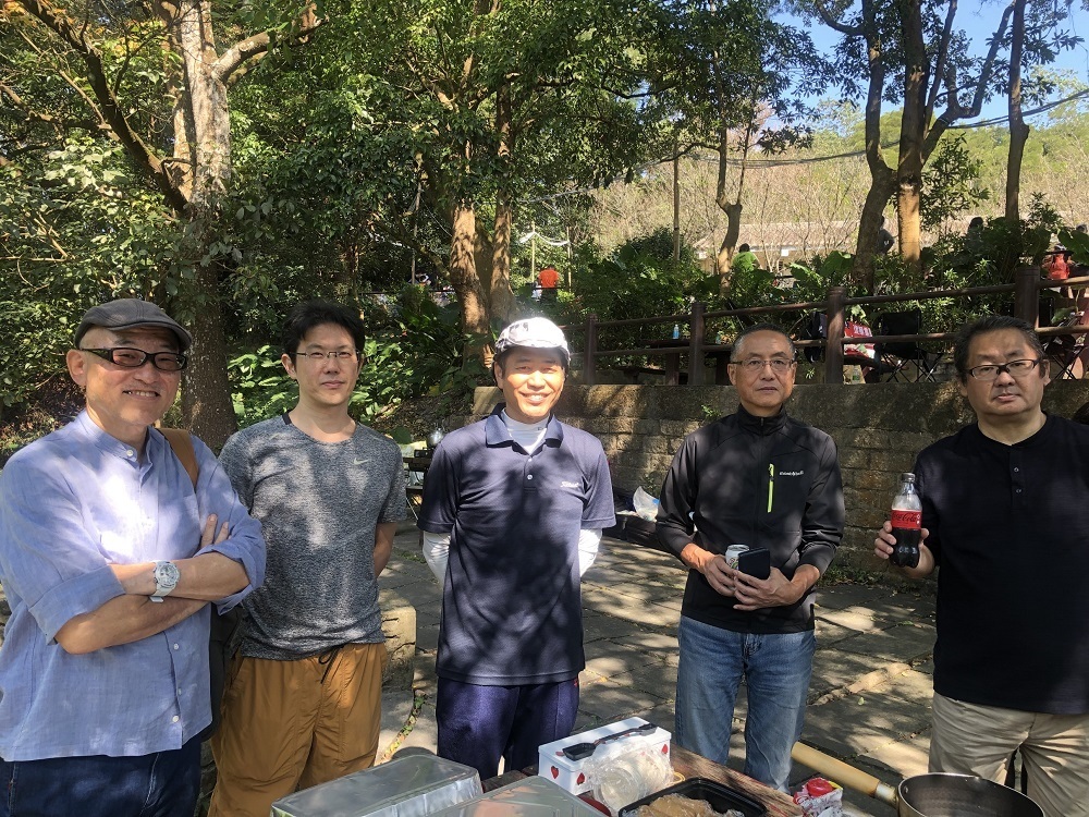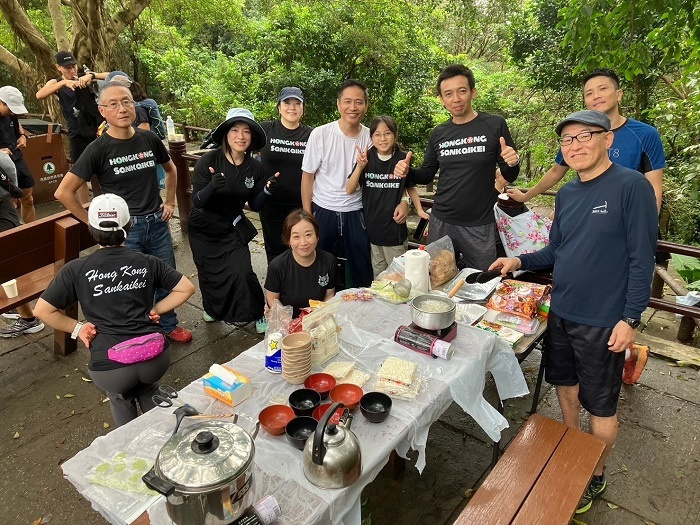 今回シンガポールから遠征サポートに来てくれた内村さんと久々に再会し、全員で荷物を手分けして51番のバスで大帽山郊野公園へ向かいます。一方、CP3で一緒だった金子さんは早朝から針山手前で選手達と合流し、伴走してくれています。直接CP8入りする越境サポーターの川島さんとも現地合流し、まずはテーブル席をゲット。今回は森田屋さんが寄贈してくれた折りたたみテーブルも持参したので余裕のあるセッティングです。早速うどんの湯通しとカレーの仕込みに取り掛かりますが、そうこうしている間に隣のBBQスペースが撤収しそうな感じだったので、脇さん親子(主に娘さん)に場所取りしてもらいスムーズに自陣を拡大。