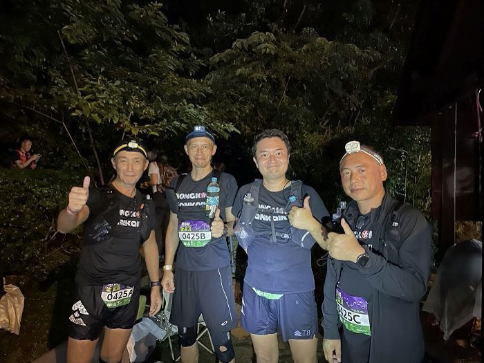 まさかこの歳になってこれ程感動出来ることがあるとは思いませんでした。簡単ではないですが(事前の準備も無論必要ですが)是非この感動を一人でも多くの山海徑の皆さんに味わってほしいと切に思います。応援頂いた全てのサポート隊の皆さん、そして一緒に歩いて頂いた野中さん、竹下さん、益山さん、本当にお疲れ様でした!最高のレースでした!